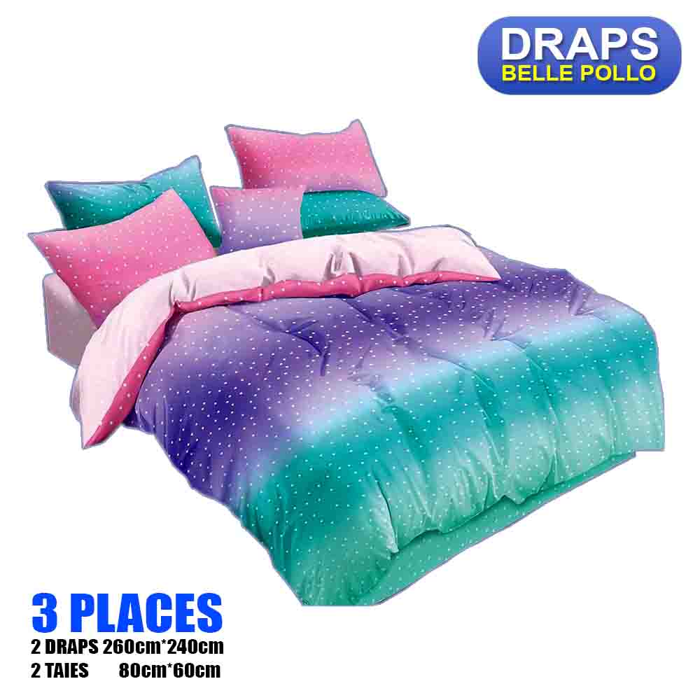 2 DRAPS DE 3 PLACES+2 TAIES BELLE POLLO ROSE VERT BLEU